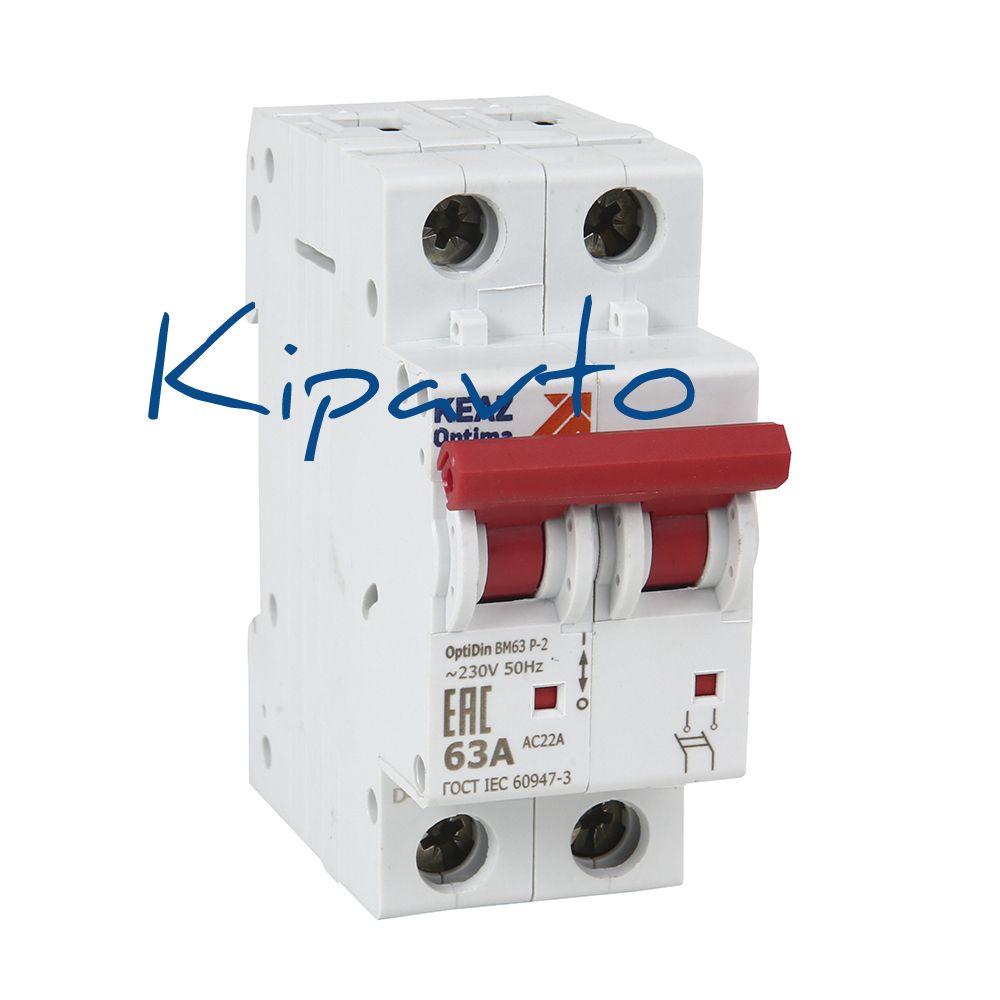 Модульный 2 полюсный выключатель нагрузки переменного тока на номинальный ток 63 А. Модульные выключатели нагрузки OptiDin ВМ63Р предназначены для применения в электрических цепях напряжением до 400В переменного тока частотой 50Гц для коммутации цепей в вводно-распределительных щитках, как общий выключатель всей квартирной цепи. Модульные выключатели нагрузки не обеспечивают защиту от перегрузки или короткого замыкания, но обеспечивают самый надежный разрыв цепи.