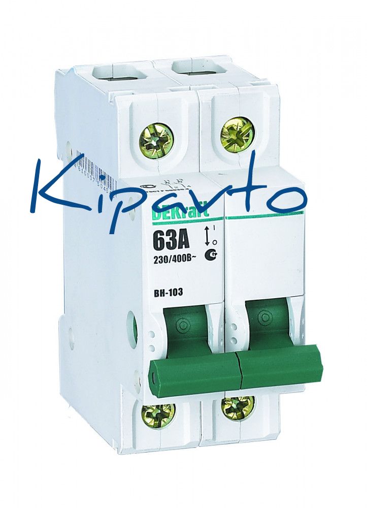 Выключатель-разъединитель серии ВН-103 DEKraft, 2P, номинальный ток 20 А, ширина - 2 мод. х 18 мм, установка - на DIN-рейку, установочное положение - любое. Выключатели-разъединители применяются для ручного включения/отключения сетей напряжением до 400 В. Специальные мостиковые контакты обеспечивают надежный разрыв цепи, они полностью исключают возможность перекрытия дугой по изоляции. Усиленная рукоятка управления обеспечивает большое количество включений/отключений.
