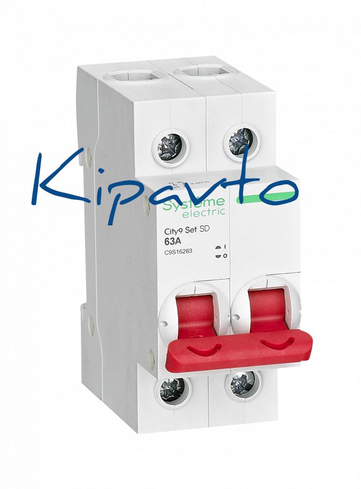 Выключатель-разъединитель серии City9 Set Systeme Electric, 2-полюсный, номинальный ток 63 А, с красной рукояткой управления. Предназначен для включения и отключения нагрузок в электрических сетях напряжением 400 В. Категория применения AC-22A. Двойной разрыв цепи обеспечивает гарантированное отключение питания и отсутствие сваривания контактов. Крепление на DIN-рейку шириной 35 мм.