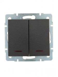 Выключатель RAIN двойной с подсветкой черный графит матовый механизм