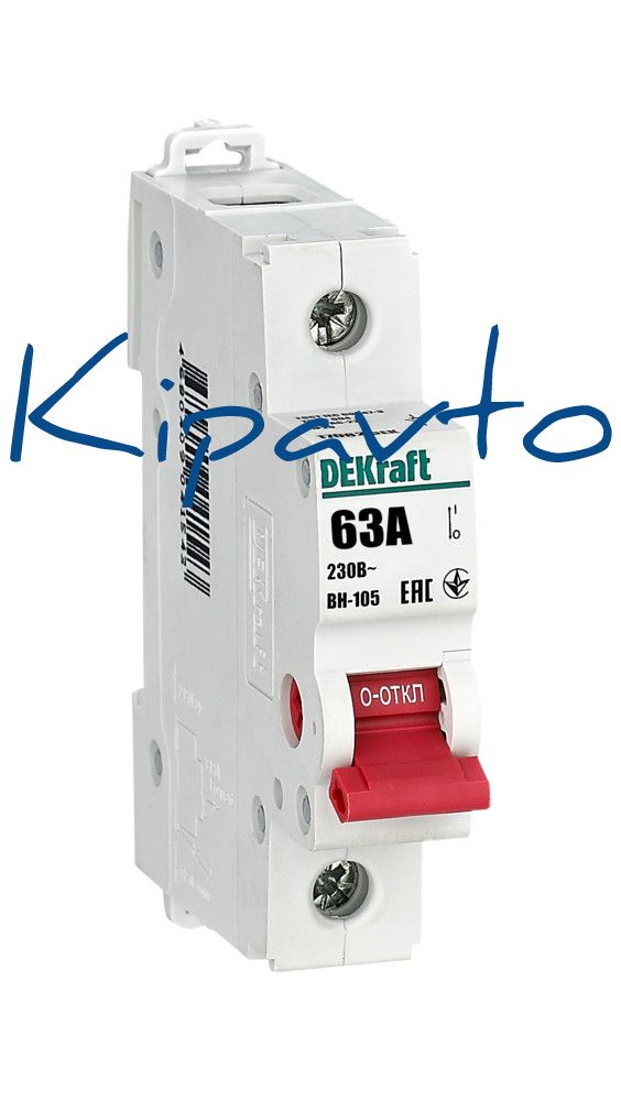 Выключатель-разъединитель серии ВН-105 Dekraft, 1-полюсный, номинальный ток 63 А, установка - на 35мм DIN-рейку, установочное положение - любое, с красной рукояткой управления. Высокие характеристики механической и электрической износостойкости. Категория применения AC-22A. Применяется для ручного включения/отключения сетей напряжением 230 В AC. Специальные мостиковые контакты обеспечивают надежный разрыв цепи, они полностью исключают возможность перекрытия дугой по изоляции.