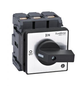 Выключатель-разъединитель MSD на номинальный ток 100 А применяется для коммутации силовых электрических цепей активной, индуктивной или смешанной нагрузок, может использоваться для включения и отключения двигателей категорий применения AC–3 и DC–3. 3-полюсное исполнение с черной поворотной рукояткой с монтажом на дверцу.
