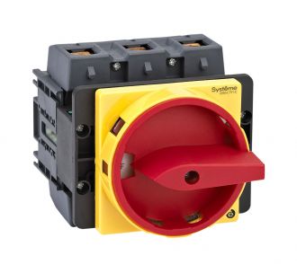 Выключатель-разъединитель 3P 125A IP20 С КРАСНОЙ РУКОЯТКОЙ НА ДВЕРЦУ 4 ВИНТАМИ С ЗАМКОМ