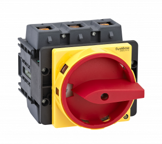 Выключатель-разъединитель MSD на номинальный ток 175 А применяется для коммутации силовых электрических цепей активной, индуктивной или смешанной нагрузок, может использоваться для включения и отключения двигателей категорий применения AC–3 и DC–3. Может применяться в качестве главного и аварийного выключателя-разъединителя. 3-полюсное исполнение с красной поворотной рукояткой с возможностью блокировки навесным замком, монтаж на дверцу.