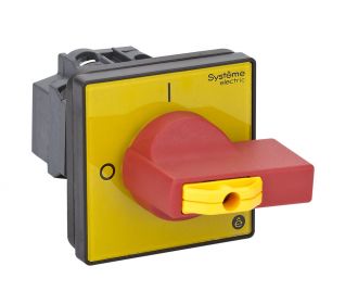 ВЫКЛЮЧАТЕЛЬ-РАЗЪЕДИНИТЕЛЬ 3P 20A IP20 С КРАСНОЙ РУКОЯТКОЙ НА ДВЕРЦУ 4 ВИНТА 1 ЗАМОК