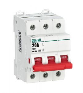 Выключатель-разъединитель серии ВН-105 Dekraft, 3-полюсный, номинальный ток 20 А, установка - на 35мм DIN-рейку, установочное положение - любое, с красной рукояткой управления. Высокие характеристики механической и электрической износостойкости. Категория применения AC-22A. Применяется для ручного включения/отключения сетей напряжением 400 В AC. Специальные мостиковые контакты обеспечивают надежный разрыв цепи, они полностью исключают возможность перекрытия дугой по изоляции.