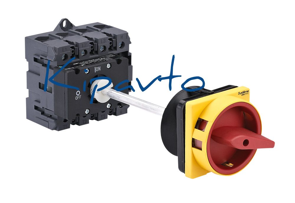 Выключатель-разъединитель 4P 100A IP20 С КРАСНОЙ ВЫНОСНОЙ РУКОЯТКОЙ НА ДИН-РЕЙКЕ/ПЛАТЬЕ С ЗАМКОМ