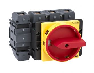 Выключатель-разъединитель 4P 125А IP20 С КРАСНОЙ РУКОЯТКОЙ НА ДВЕРЦУ 4 ВИНТАМИ С ЗАМКОМ