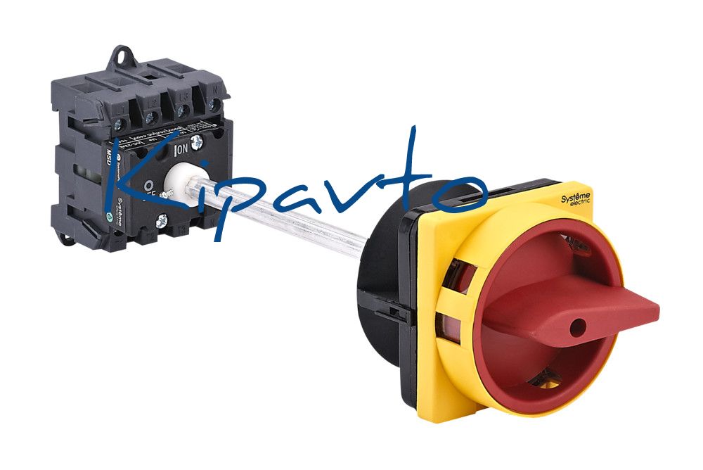 Выключатель-разъединитель 4P 32A IP20 С КРАСНОЙ ВЫНОСНОЙ РУКОЯТКОЙ НА ДИН-РЕЙКЕ/ПЛАТЬЕ С ЗАМКОМ