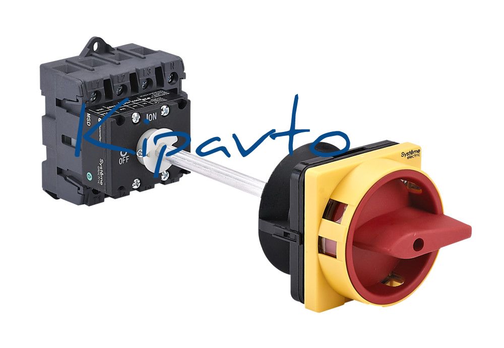 Выключатель-разъединитель 4P 40A IP20 С КРАСНОЙ ВЫНОСНОЙ РУКОЯТКОЙ НА ДИН-РЕЙКЕ/ПЛАТЬЕ С ЗАМКОМ