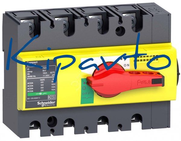 Выключатель-разъединитель INS100 4п красная рукоятка/желтая панель