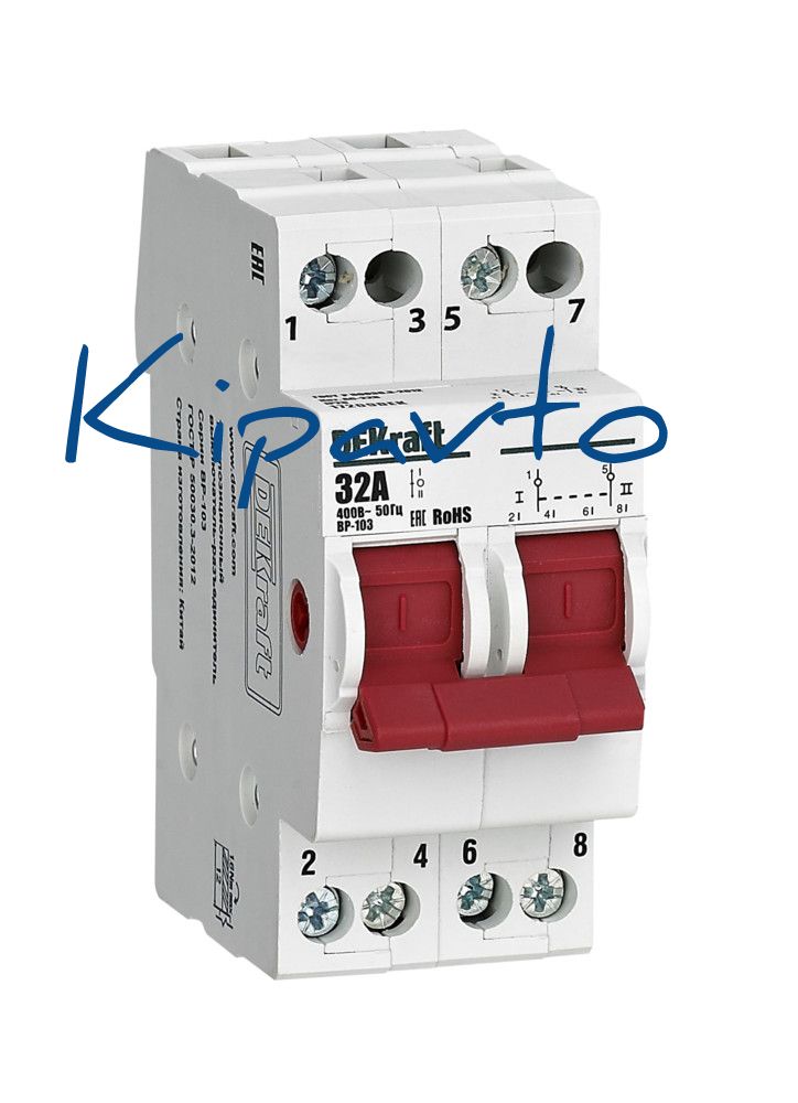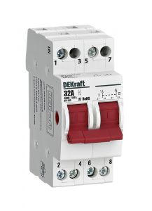 Выключатель-разъединитель трехпозиционный серии ВР-103 Dekraft, 2-полюсный, номинальный ток 32 А, установка – на 35мм DIN-рейку, установочное положение - любое, с красной рукояткой управления. Категория применения AC-22B. Применяется для ручного включения / отключения от сети отдельных групп потребителей с напряжением 400В AC в распределительных, учетно-распределительных щитках. Включая переключения с основной сети на резервную в системах ручного ввода резерва. Сечение подключаемых проводников 10 мм2, расположение - в шахматном порядке.