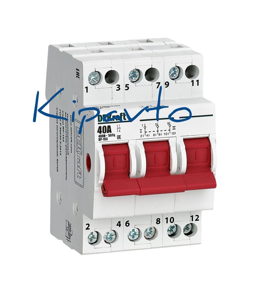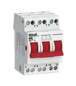 Выключатель-разъединитель трехпозиционный серии ВР-103 Dekraft, 3-полюсный, номинальный ток 40 А, установка – на 35мм DIN-рейку, установочное положение - любое, с красной рукояткой управления. Категория применения AC-22B. Применяется для ручного включения / отключения от сети отдельных групп потребителей с напряжением 400В AC в распределительных, учетно-распределительных щитках. Включая переключения с основной сети на резервную в системах ручного ввода резерва. Сечение подключаемых проводников 10 мм2, расположение - в шахматном порядке.