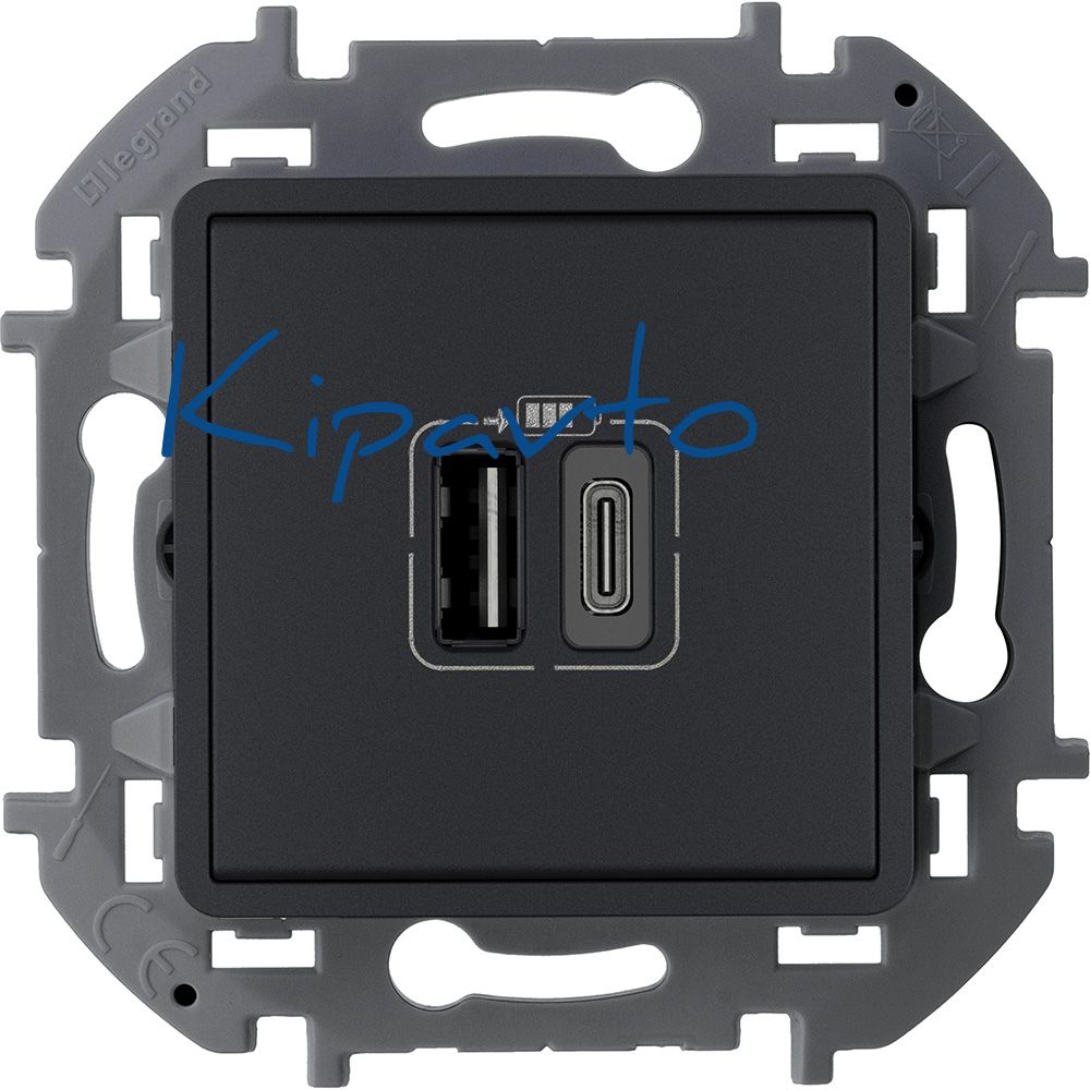 Зарядное устройство Inspiria для скрытого монтажа , тип А-тип С, цвет ''Антрацит''. Напряжение ~240В/-5В, максимальный зарядный ток 3000 мА. Применяется для непосредственной зарядки одного или двух мобильных устройств.