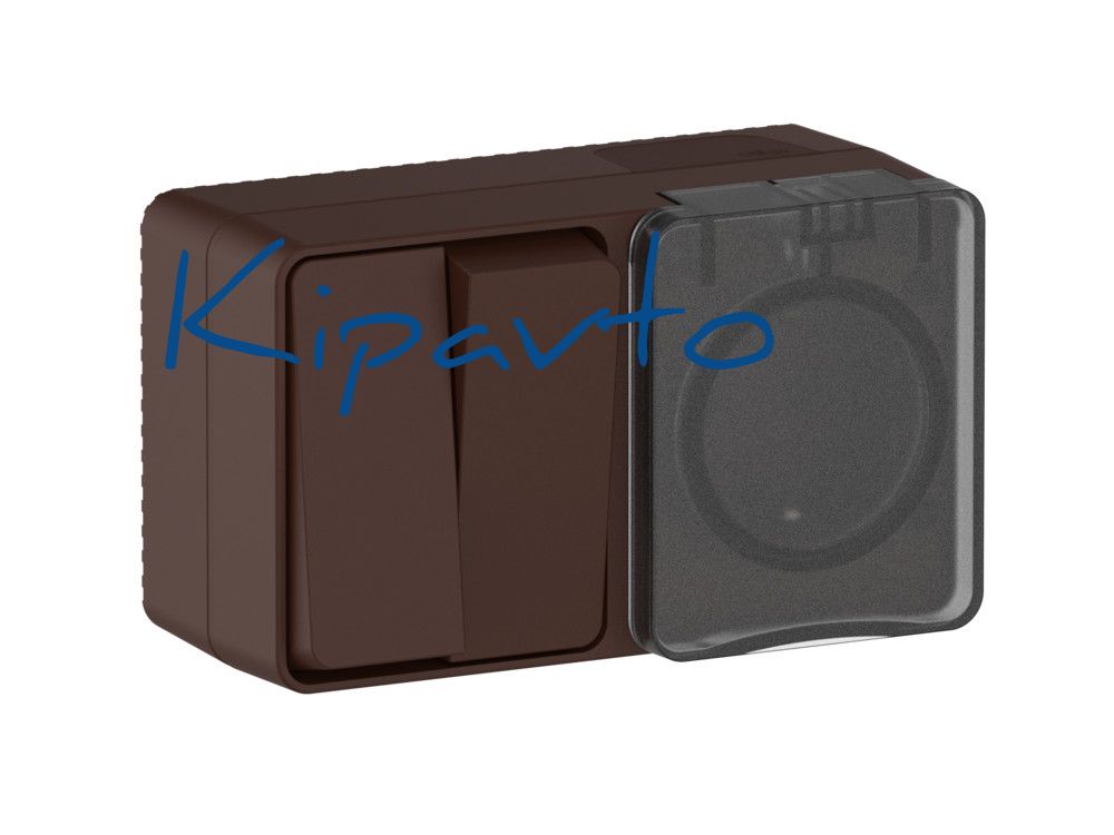 AtlasDesign PROFI IP54 О/У БЛОК: РОЗ. з/к со шт. 16А, ВЫКЛ.2-клав.10А, КОРИЧНЕВЫЙ