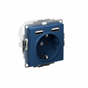 Розетка силовая Systeme Electric (ранее Schneider Electric) серии AtlasDesign 16А в цвете аквамарин с заземлением и шторками с розеткой USB, с друмя разъемами типа А. Заземляющий контакт обеспечивает дополнительную защиту от удара электрическим током. Шторки обеспечивают дополнительную безопасность в доме, где находятся дети. Один механизм позволяет как подключить бытовые приборы, так и зарядить мобильные устройства.