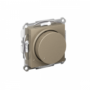Механизм светорегулятора Systeme Electric (ранее Schneider Electric) серии AtlasDesign в цвете шампань поворотно-нажимной для нагрузки мощностью до 400 Вт, подходит для LED ламп. Светорегулятор позволяет установить в помещении комфортный уровень освещения. При подключении второго переключателя диммер может использоваться как проходной переключатель. Может использоваться как выключатель или переключатель. Выполнен из материала, стойкого к УФ-излучению и появлению царапин.