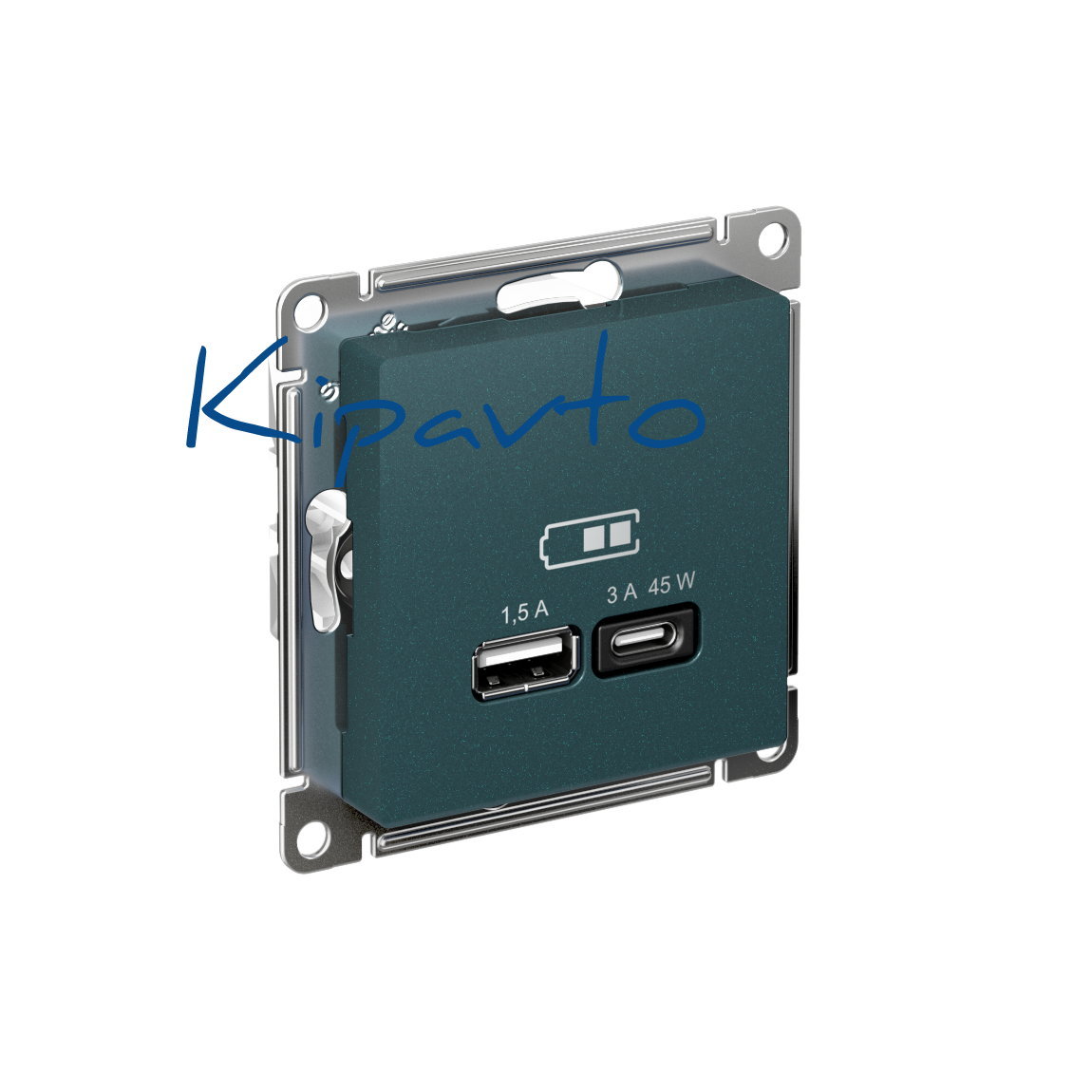 ATLASDESIGN USB РОЗЕТКА A + тип-C 45W высокоскор.заряд. QC,PD, механизм, ИЗУМРУД