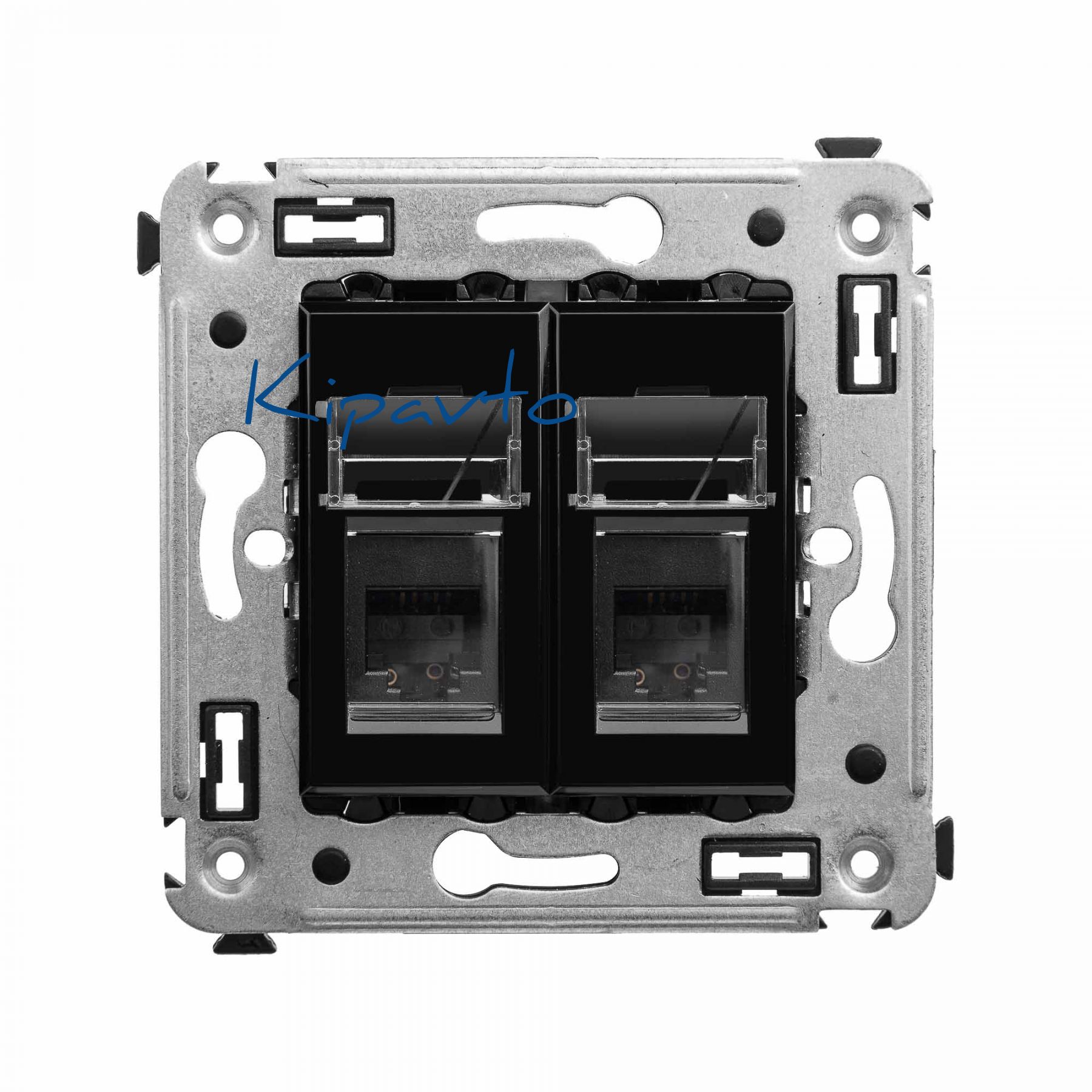 Телефонная розетка RJ-12 двойная со шторкой используется для коммутации линий телефонной связи в патч-панелях или для связи телефонных аппаратов с розеткой. Предназначена для скрытого монтажа в стену, поставляется в комплекте с суппортом. Материал – металл, термопласт. 2 модуля. Пластиковые детали электроустановочного изделия имеют цвет ''Черный квадрат''.