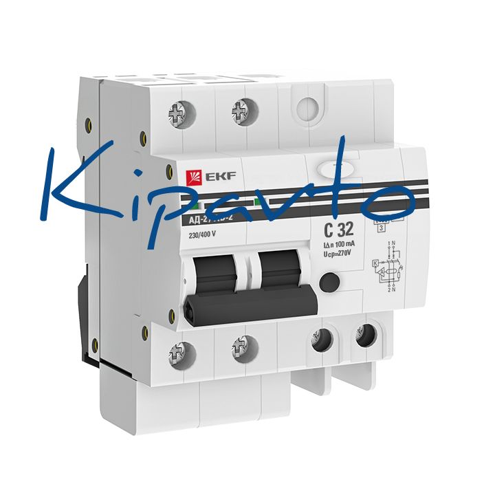 - диф. автомат 2Р 32А 100мА тип АС х-ка C эл. 6кА АД-2 EKF