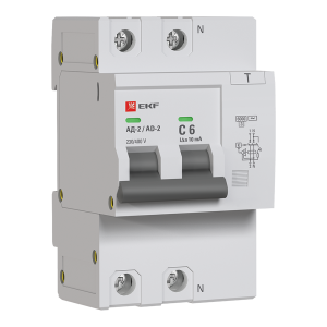 - диф. автомат 2Р 6А 10мА тип АС х-ка C эл. 6кА АД-2 EKF