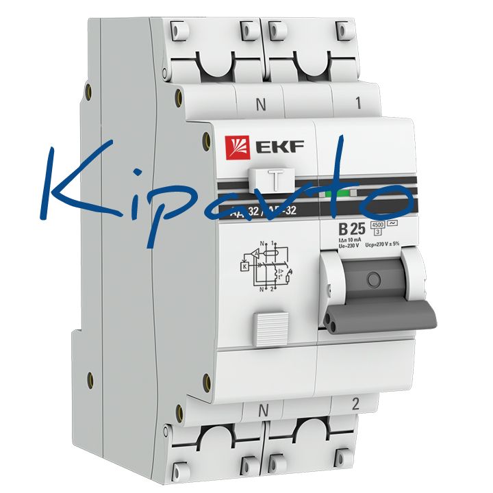 Комплектация: АД-32 1P+N 25А (В) 10мА тип (АС) эл. 4,5кА EKF PROxima