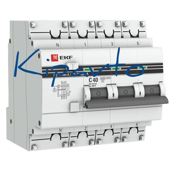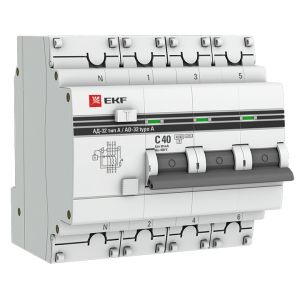 - АД-32 3P+N 40А (С) 30мА тип (А) эл. 4, 5кА EKF PROxima