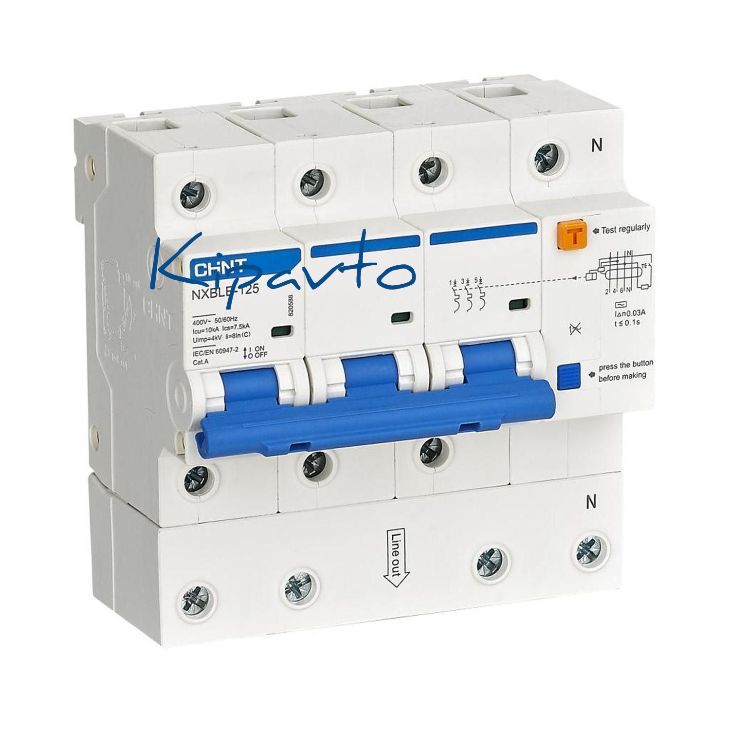 Автомат дифференциальный NXBLE-125 3P+N 100A 30мА тип AC характеристика C 10кА электронный R