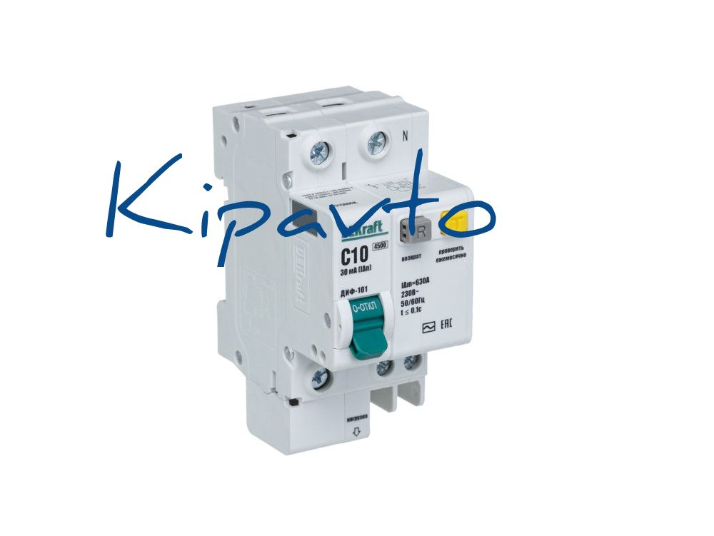 Автоматический выключатель дифференциального тока серии ДИФ-101 DEKraft, 1P+N, ном. ток 10 А, характеристика C, откл. способность Icn 4, 5 kA, ток утечки 30 мА, блок дифф. защиты - электронный, ширина - 2, 5 мод. х 18 мм, монтаж - на DIN-рейку. АВДТ применяются в сетях напряжением до 220 В пер. тока для защиты электроустановок от сверхтоков и токов утечки. Для расширения функционала АВДТ возможно использование аксессуаров от выключателей серии ВА-101.