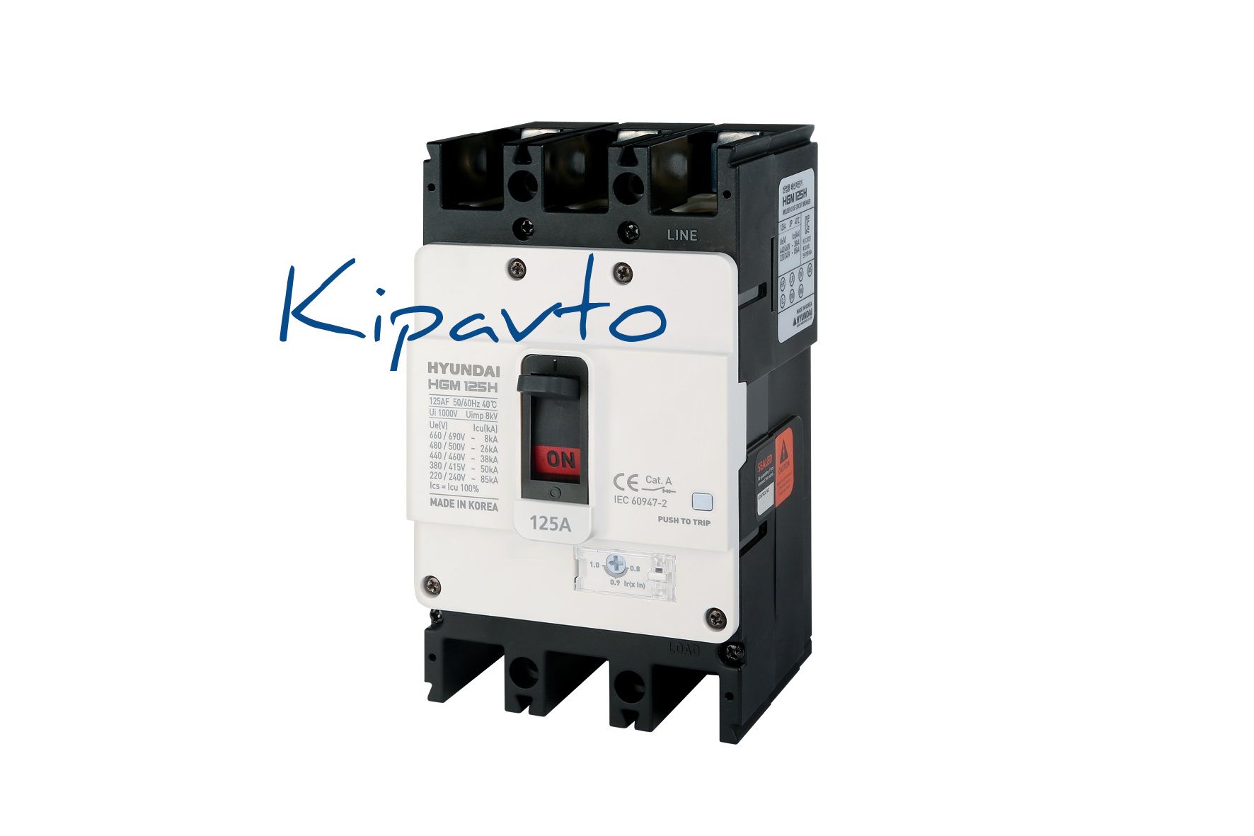 Автоматический выключатель в литом корпусе типа HGM, типоразмера 125AF, арт.HGM125L3PT4S0000C00063F (63А, 55кА, 3 полюса, регулируемый термомагнитный расцепитель, переднее подключение)