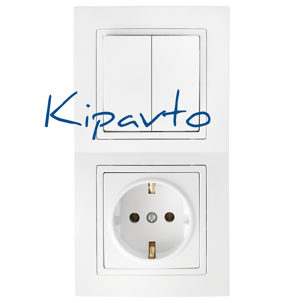 Блок электроустановочный розетка с заземляющим контактом + двухклавишный выключатель. Возможность горизонтальной и вертикальной установки. Пластик ABS, глянцевая поверхность, устойчив к УФ-излучению, ударо-прочный и стойкий к излому корпус.