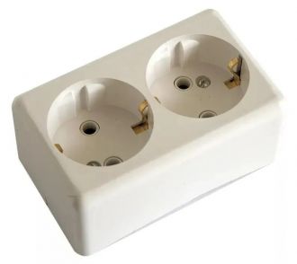 Розетка штепсельная двухполюсная двухместная открытой установки с заземляющим контактом предназначена для присоединения электрических приемников с номинальным напряжением 250 В к электрической сети переменного тока в нормальных климатических условиях внешней среды. Электротехнические свойства механизма полностью соответствуют номинальным токовым показателям отечественных энергетических линий.В качестве материала для производства изделия использовался специальный очень прочный и экологически безопасный полимер. Изделие надежно защищено от разрушительного воздействия ультрафиолетового излучения, не претерпевает видимых изменений при постоянных многочисленных эксплуатационных контактах.