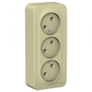 Розетка Systeme Electric (ранее Schneider Electric) BLANCA (открытой установки, цвет бежевый) трёхместная без заземления и шторок, с изолирующей пластиной подходит для сетей 250 В, на ток 16 А. Входные отверстия расположены под углом 45 градусов, благодаря чему можно подключить несколько устройств: вилки и адаптеры не будут мешать друг другу. Четкая маркировка клемм для безошибочного подключения. Корпус изделия выполнен из ABS-пластика