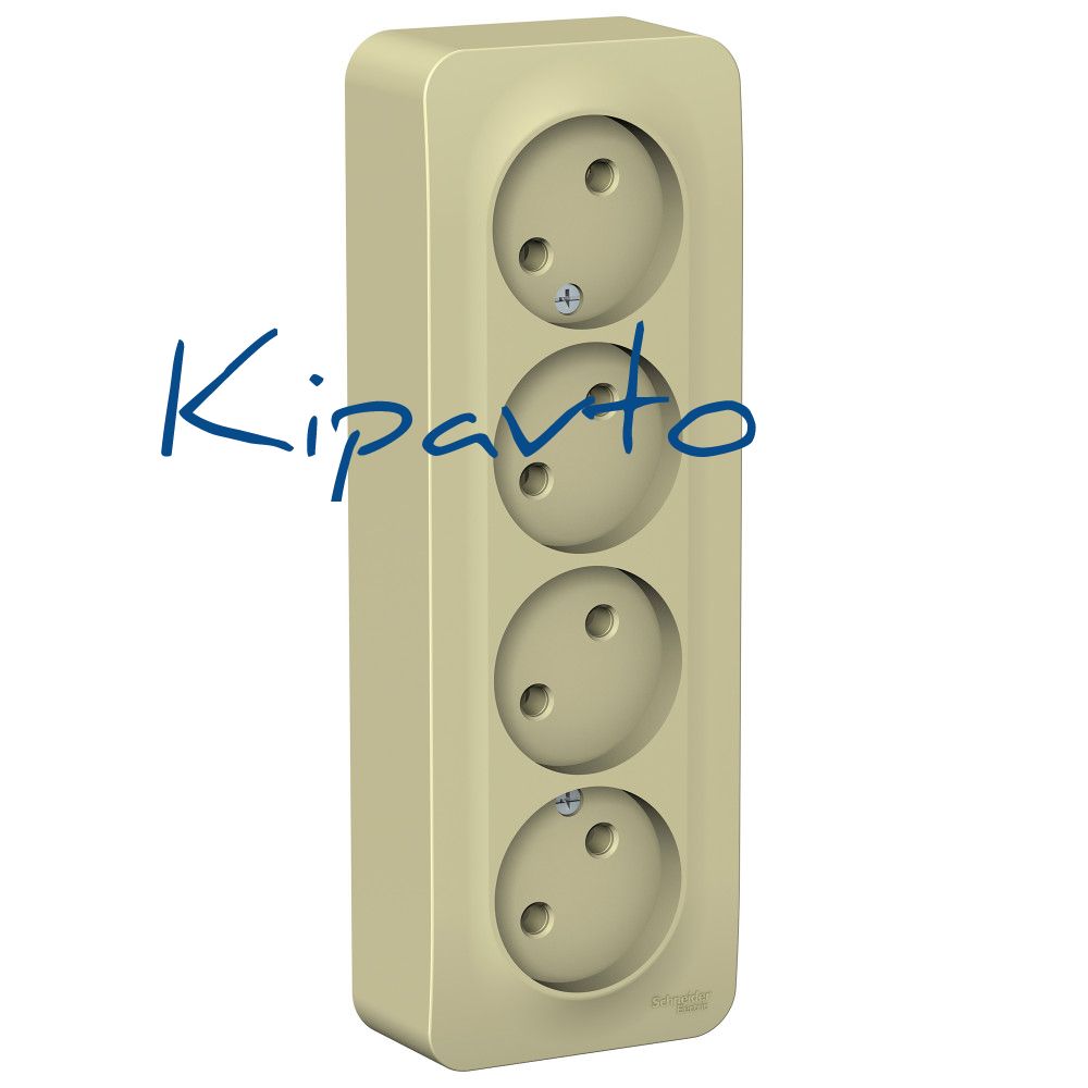 Розетка Systeme Electric (ранее Schneider Electric) BLANCA (открытой установки, цвет бежевый) четырёхместная без заземления и шторок, с изолирующей пластиной подходит для сетей 250 В, на ток 16 А. Четкая маркировка клемм для безошибочного подключения. Входные отверстия расположены под углом 45 градусов, благодаря чему можно подключить несколько устройств: вилки и адаптеры не будут мешать друг другу. Корпус изделия выполнен из ABS-пластика.