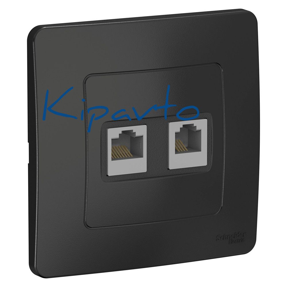 BLANCA скрытой установки розетка двойная компьютерная+телефон, антрацит