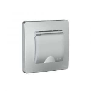 BLANCA С/У IP44 РОЗЕТКА с заземл. со шторк., с крышкой, 16А, 250В, АЛЮМИНИЙ