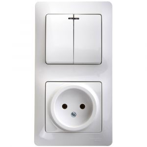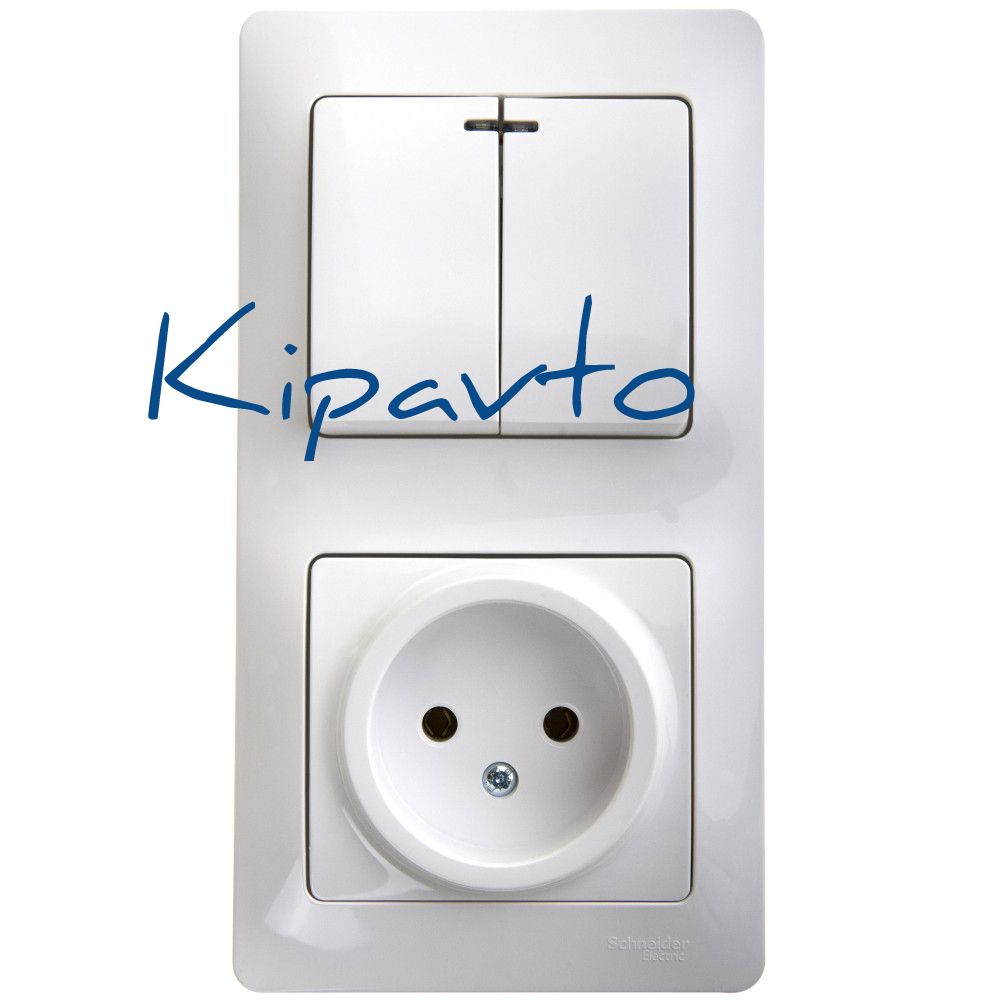 Блок: розетка + выключатель двухклавишный с подсветкой белый