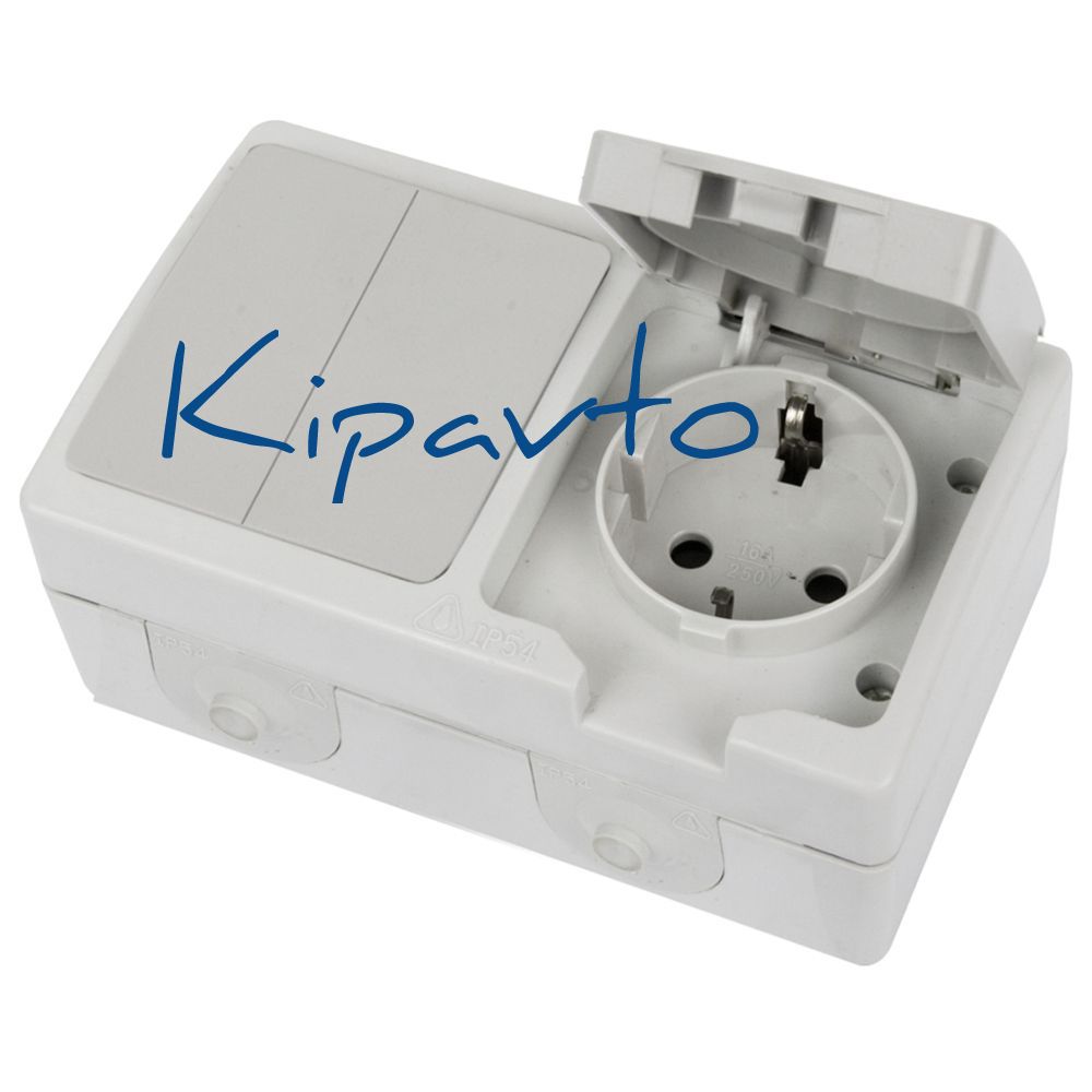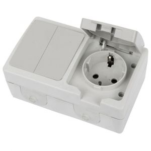 Блок розетка 1-мест с/з 250В 16А+выкл 2-клав 1-полюс для 2-х цепей 250В 10А белый/серый STEKKER