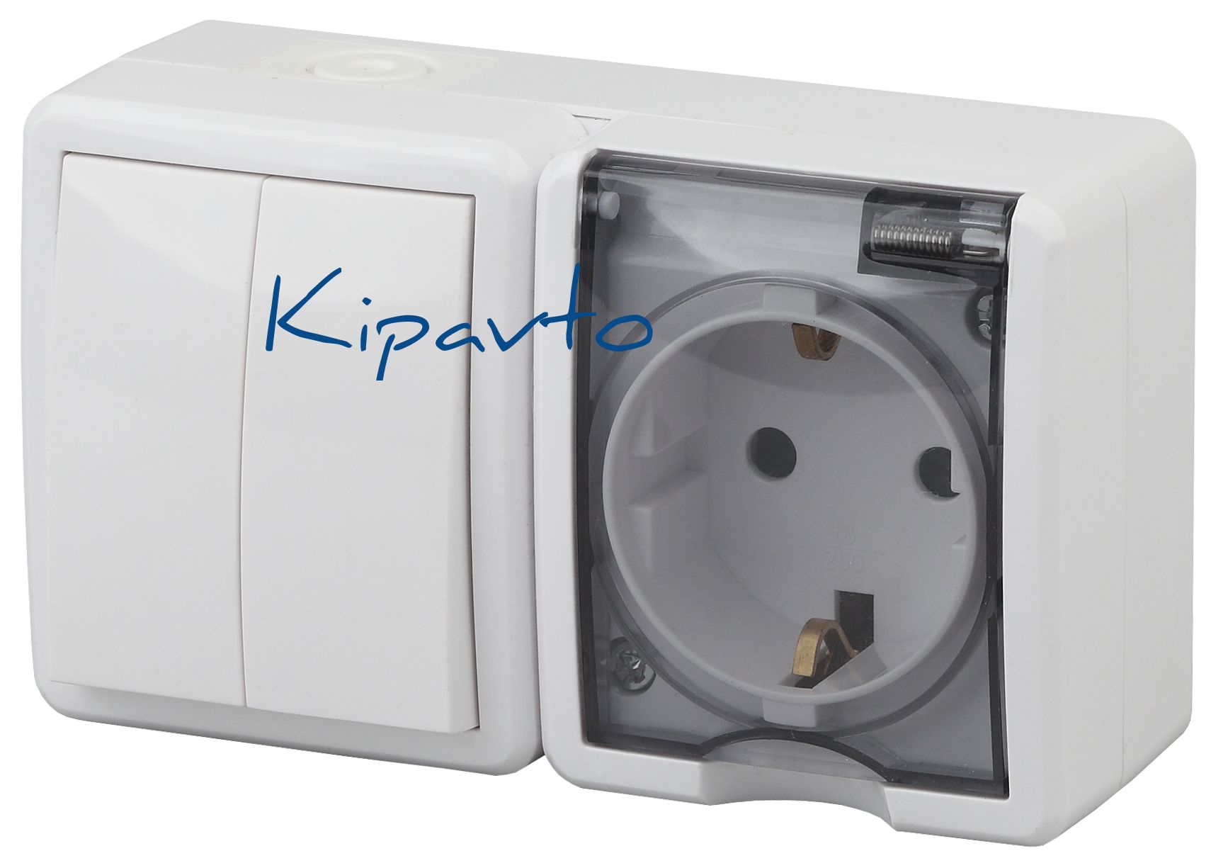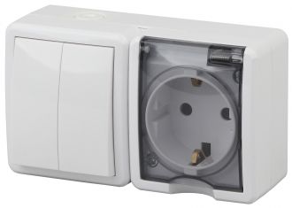 Блок розетка+выключатель двойной IP54, 16A(10AX)-250В, ОУ, Эра Эксперт, белый, 11-7402-01