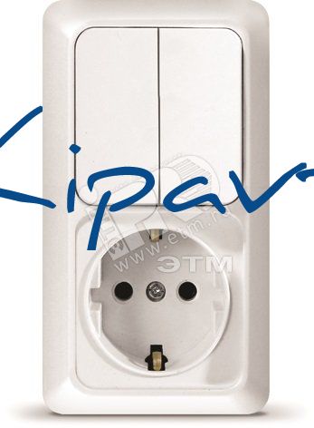 Блок выключатель двуклавишный + розетка с заземлением Олимп вертикальный белый