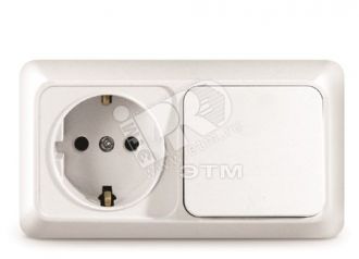 Блок выключатель одноклавишный + розетка с заземлением Олимп горизонтальный белый