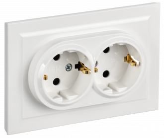 BRITE Розетка 2-местная с заземлением с защитными шторками 16А в сборе РСш12-3-БрБ белый