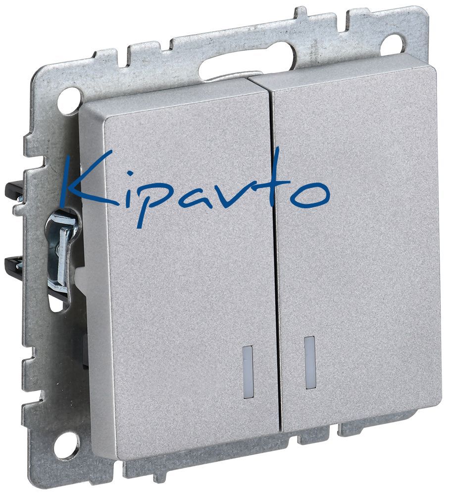 BRITE Выключатель двухклавишный с индикацией 10А ВС10-2-1-БрА алюминий