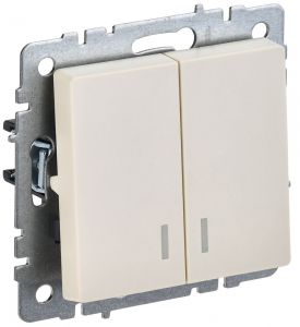 BRITE Выключатель двухклавишный с индикацией 10А ВС10-2-1-БрКр бежевый