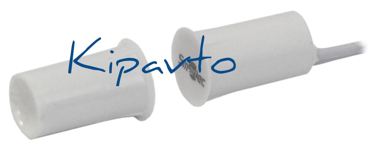 Врезной магнитоконтактный датчик для деревянных дверей. Рабочий зазор- 15–25 мм. НЗ выход. Подключение – кабельный отвод. Изготовлен из пластика