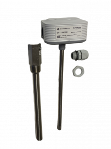Датчик температуры погружной, диапазон измерения температуры 0…+100°С, выходной сигнал 0…10В, RS485/Modbus 200мм напряжение питания 24 В переменного тока±20%/-15…35В, в комплект поставки входит гильза 150 мм