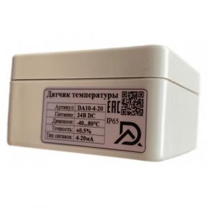 Промышленный датчик температуры DA10-4-20 предназначен для преобразования температуры воздуха в унифицированный сигнал 4-20мА. Датчик температуры воздуха применяется в различных промышленных и бытовых областях. Датчик температуры воздуха выполнен в белом компактном герметичном пластиковом корпусе с металлическим штоком 50мм и кабельным вводом