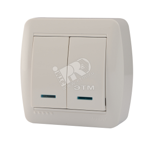 Демет Выключатель двойной с подсветкой белый