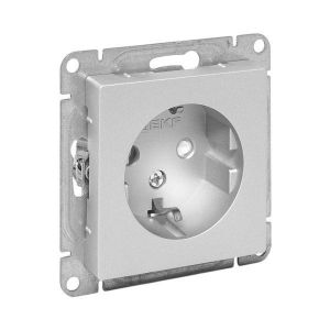 Эпика Механизм розетки 16А с заземлением со шторками алюминий EKF