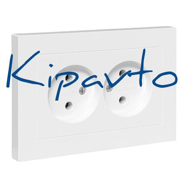 Эпика Механизм розетки двойной 16А без заземления без шторок с рамкой белый EKF